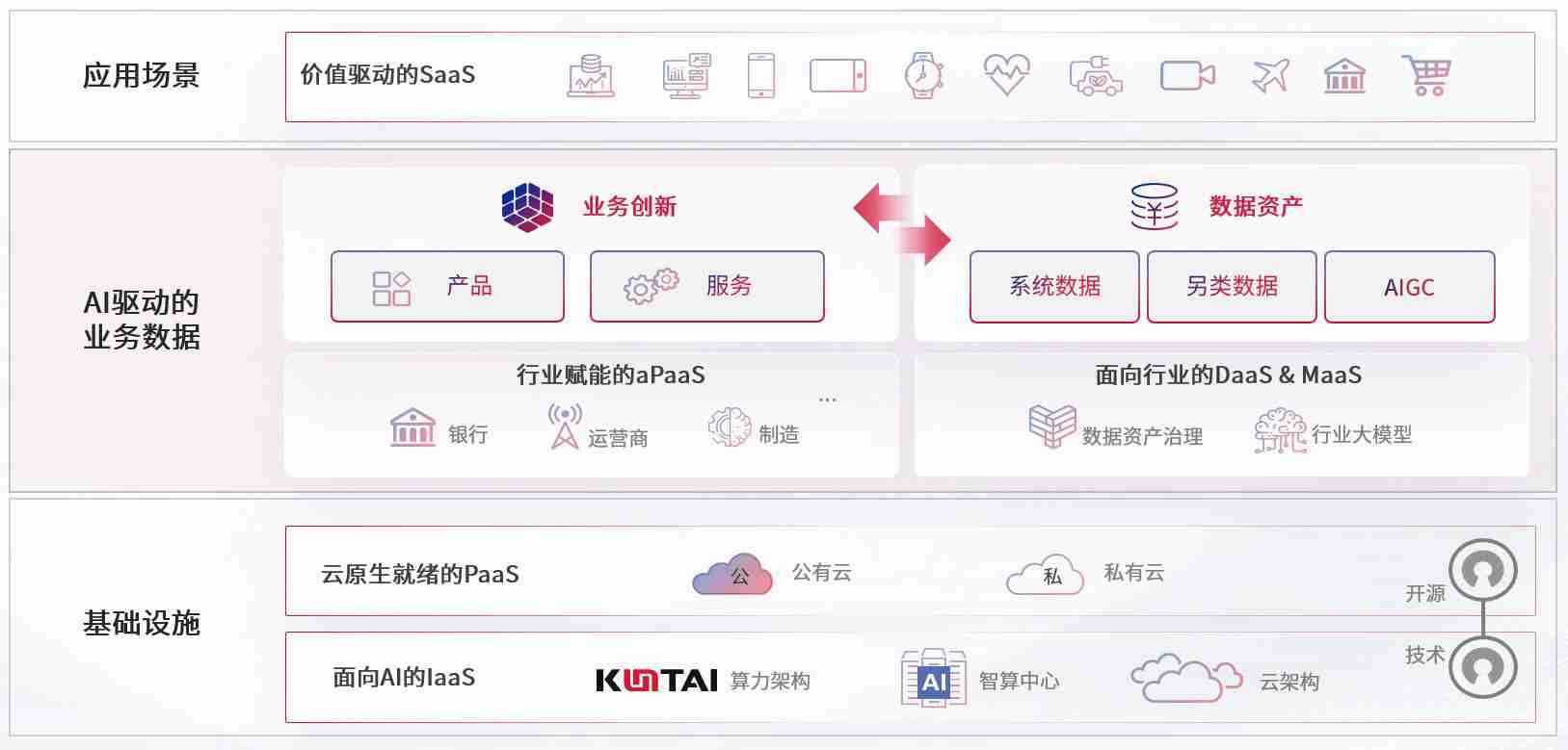 数字时代,,,围绕企业数字化转型的关键要素,,,,人生就是搏数码开创性的提出数云融合战略和技术体系框架,,着力在云原生、、、、数字原生、、、AI原生和信创产业上架构产品和服务能力,,,,为处在不同数字化转型阶段的快消零售、、、汽车、、、、金融、、、、医疗、、政企、、教育、、运营商等行业客户提供泛在的敏捷IT能力和融合的数据驱动能力,,构建跨界融合创新的数字业务场景和新业务模式,,,,助力企业级客户建立面向未来的核心能力和竞争优势,,全面推动社会的数字化、、、、智能化转型升级。。。。